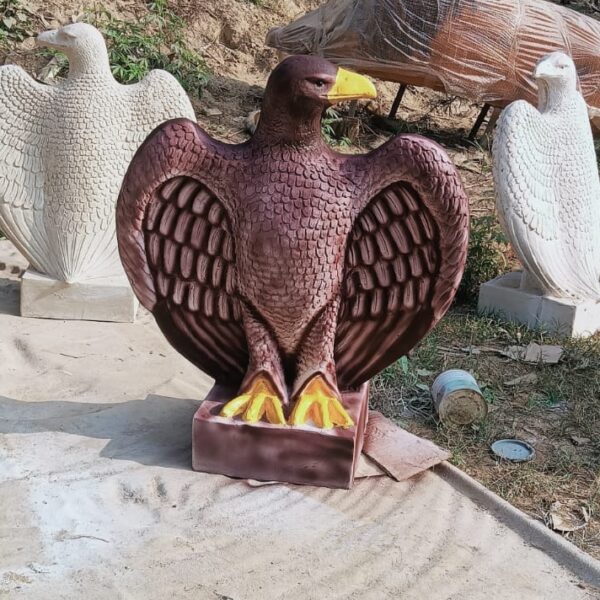 The product SG-AM74 is a 2 ft Baaz (hawk or falcon) shaped structure made from FRP Fiberglass. It is manufactured by Swiss Gallery The Fiber Hub and is designed for both indoor and outdoor use. This product originates from India.