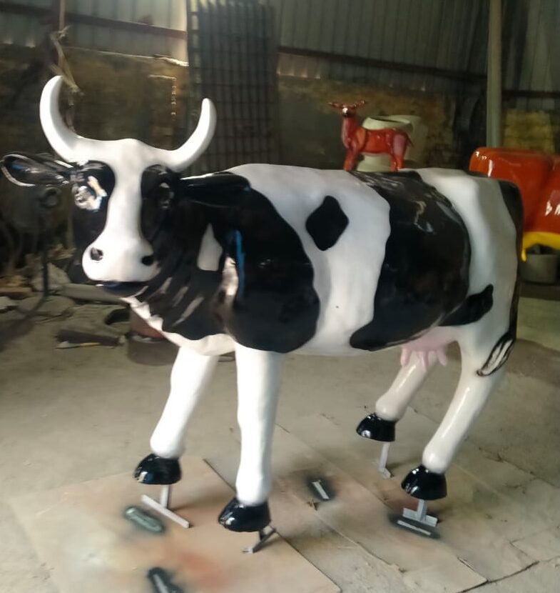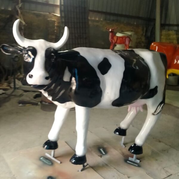 The SG-AM52 Cow Sculpture by Swiss Gallery The Fiber Hub is a finely crafted 6-foot representation of the sacred and revered cow, symbolizing purity, prosperity, and nourishment in many cultures. Constructed from high-quality FRP Fiberglass, this sculpture is durable, weather-resistant, and ideal for both indoor and outdoor use.