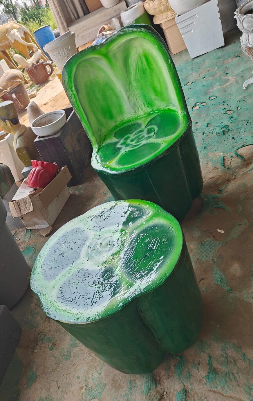 Capsicum Table & Chair Set made from FRP Fiberglass, designed by Swiss Gallery The Fiber Hub. With a compact 2 Feet size, this set is ideal for both indoor and outdoor use. Its customized, modern design adds a fun and unique touch to any space. Manufactured in India, this set is a creative and durable furniture option for homes, cafes, play areas, and themed environments.
