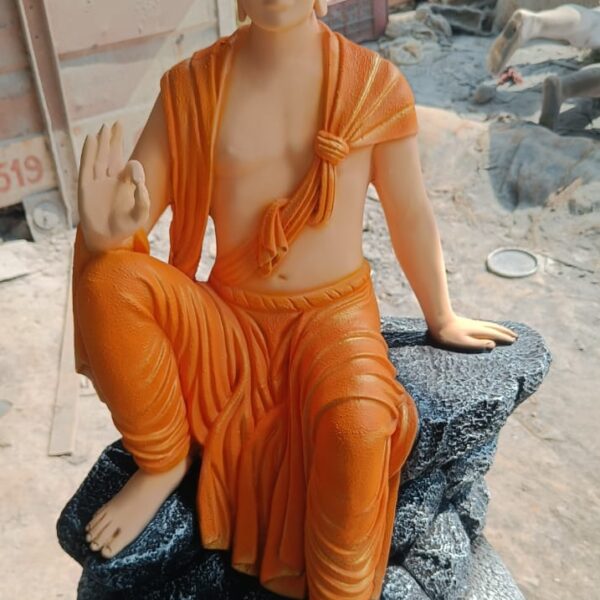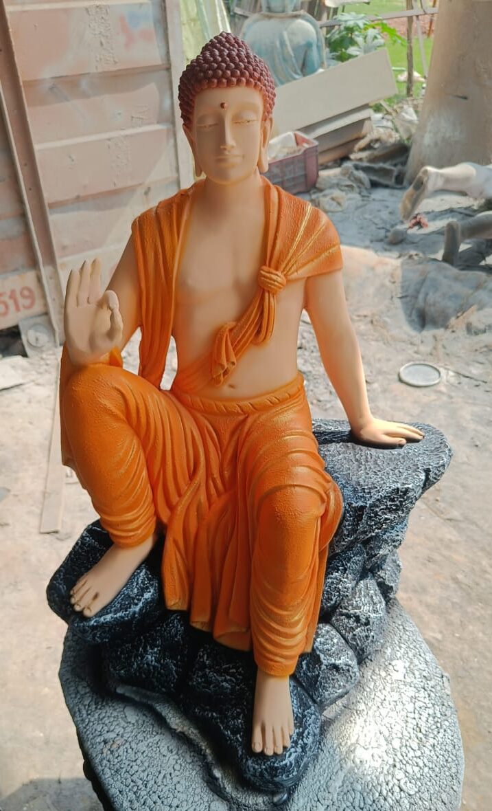 Rock Buddha Statue made from FRP Fiberglass, designed by Swiss Gallery The Fiber Hub. It has a width of 24 inches and a height of 28 inches, making it a perfect fit for both indoor and outdoor spaces. With a customized, modern design, this Indian-made statue adds a serene and elegant touch to meditation areas, gardens, or contemporary interiors.