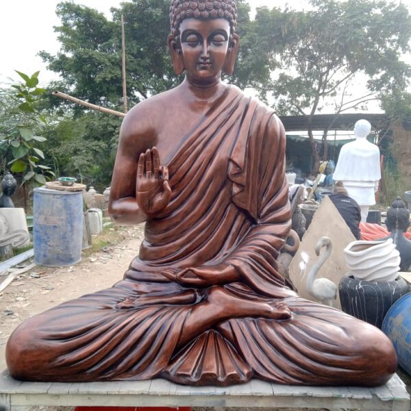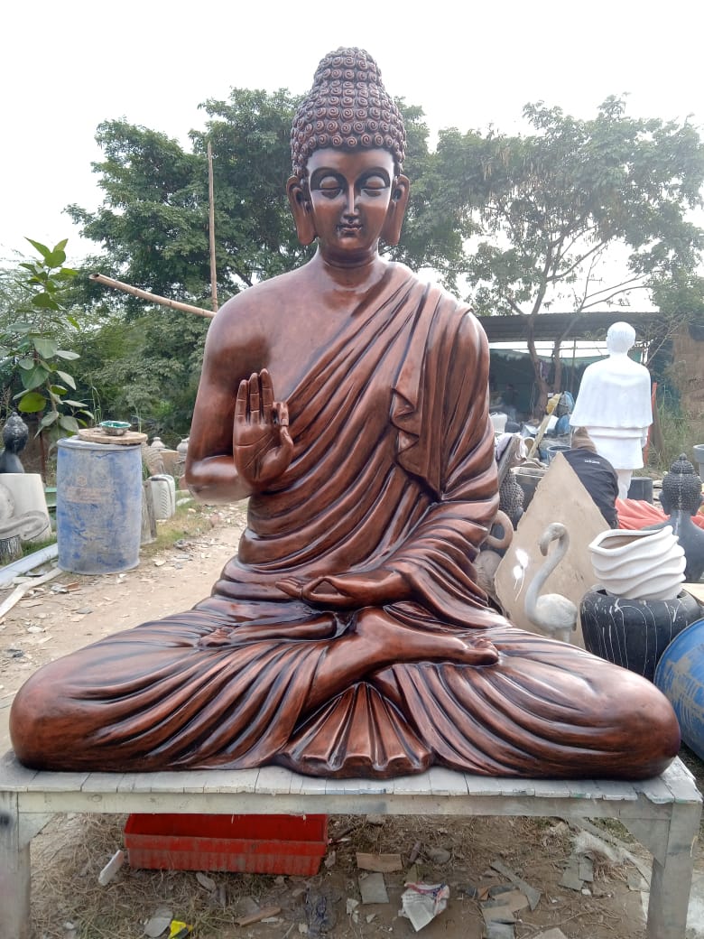 Royal Buddha Statue crafted from FRP Fiberglass, designed by Swiss Gallery The Fiber Hub. With a height of 6.5 feet, this customized, modern statue is suitable for both indoor and outdoor environments. Manufactured in India, it is an ideal addition to meditation centers, gardens, temples, or contemporary spaces, offering a regal and peaceful presence.