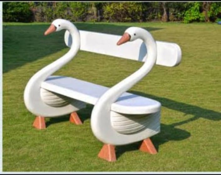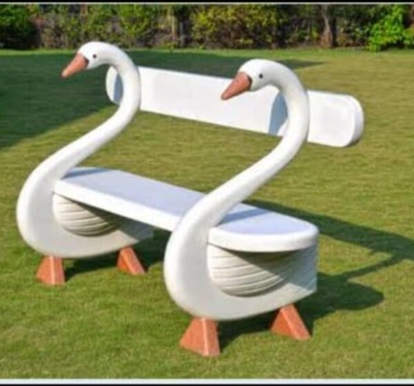 Swan Park Bench made from FRP Fiberglass, designed by Swiss Gallery The Fiber Hub. It has a 5×3 Feet size, making it a comfortable and decorative seating option. Suitable for both indoor and outdoor use, this bench is highly durable and weather-resistant. Featuring a customized, modern design, it enhances aesthetics while ensuring functionality. Manufactured in India, this elegant bench is perfect for parks, gardens, public spaces, and contemporary indoor areas.